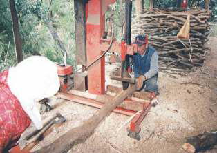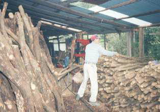割木作業は機械化により作業が大変楽になった。