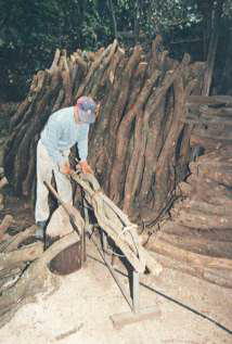 原木が集まると窯に詰め込むための木ごしらえが始まる