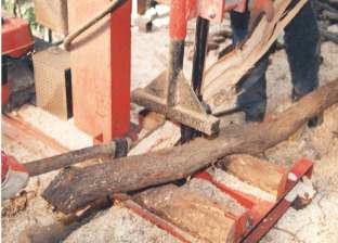 太い原木は木割機により割り揃える。